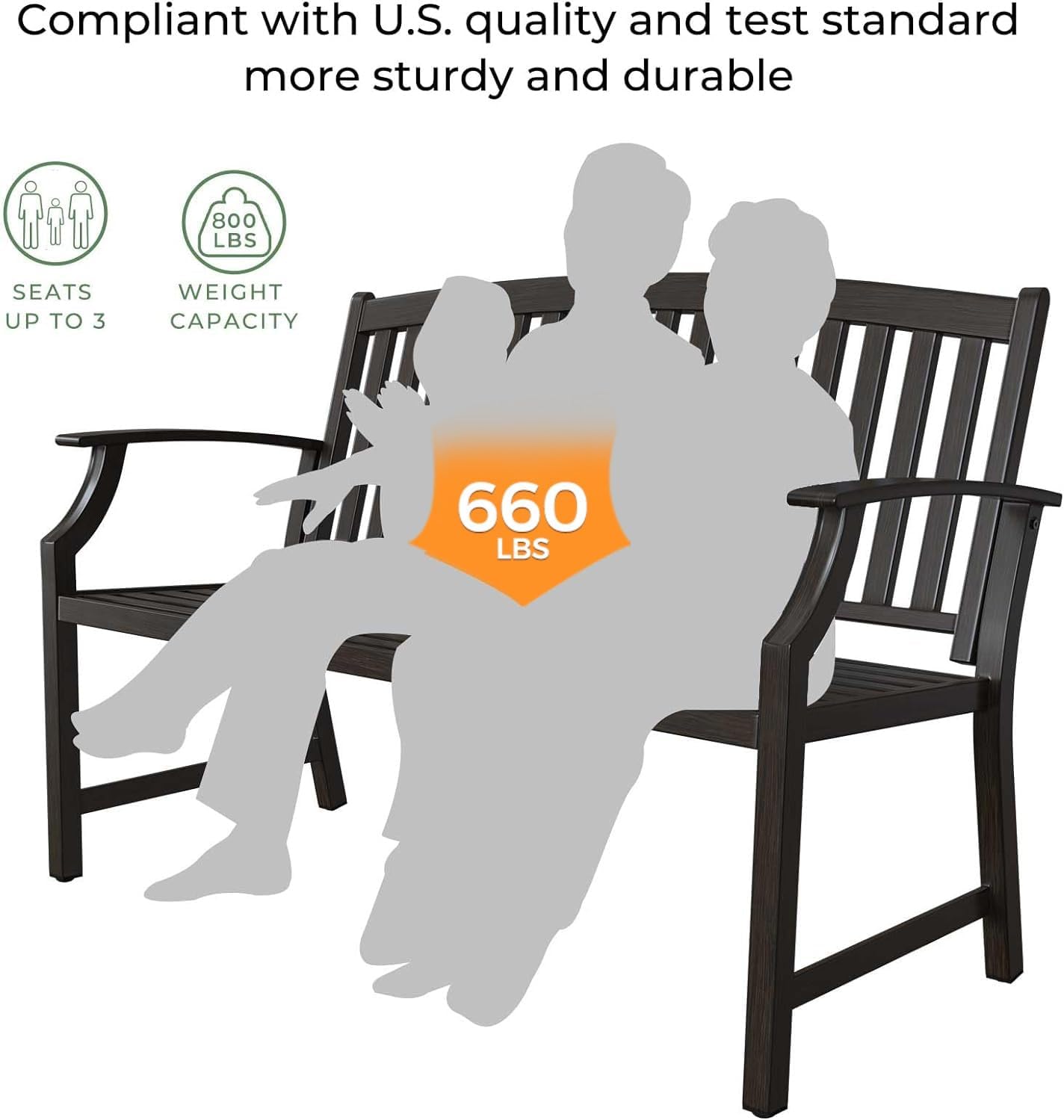 Grand patio 52" Farmhouse Outdoor Bench, Garden Benches with Anti-Rust Aluminum Powder Coated Frame, Faux Wood Grain Finish Frame Patio Bench for Front Porch, Northwoods Brown