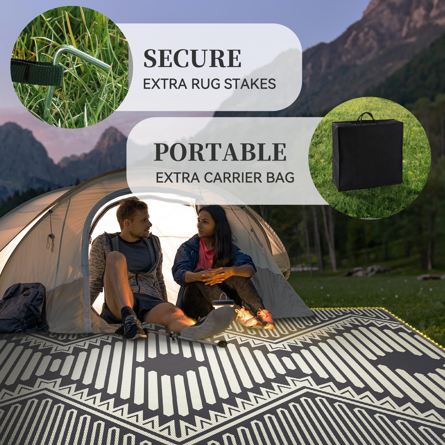 MontVoo Outdoor Rug with Led String Strip Lights 6x9 ft Waterproof Outdoor Patio Rug Mat Reversible Plastic Straw Rug Outside Outdoor Rug for RV Camping Picnic Balcony Fairy Boho Outdoor Decor