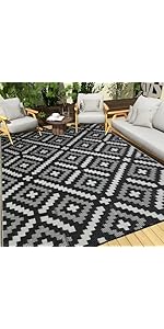 Outdoor Rug 8x10 ft with LED Light, Waterproof Reversible Outdoor Plastic Straw Rug for Patios Clearance, Large Outdoor Area Rug Carpet RV Mat for Camping Backyard Deck Porch Beach