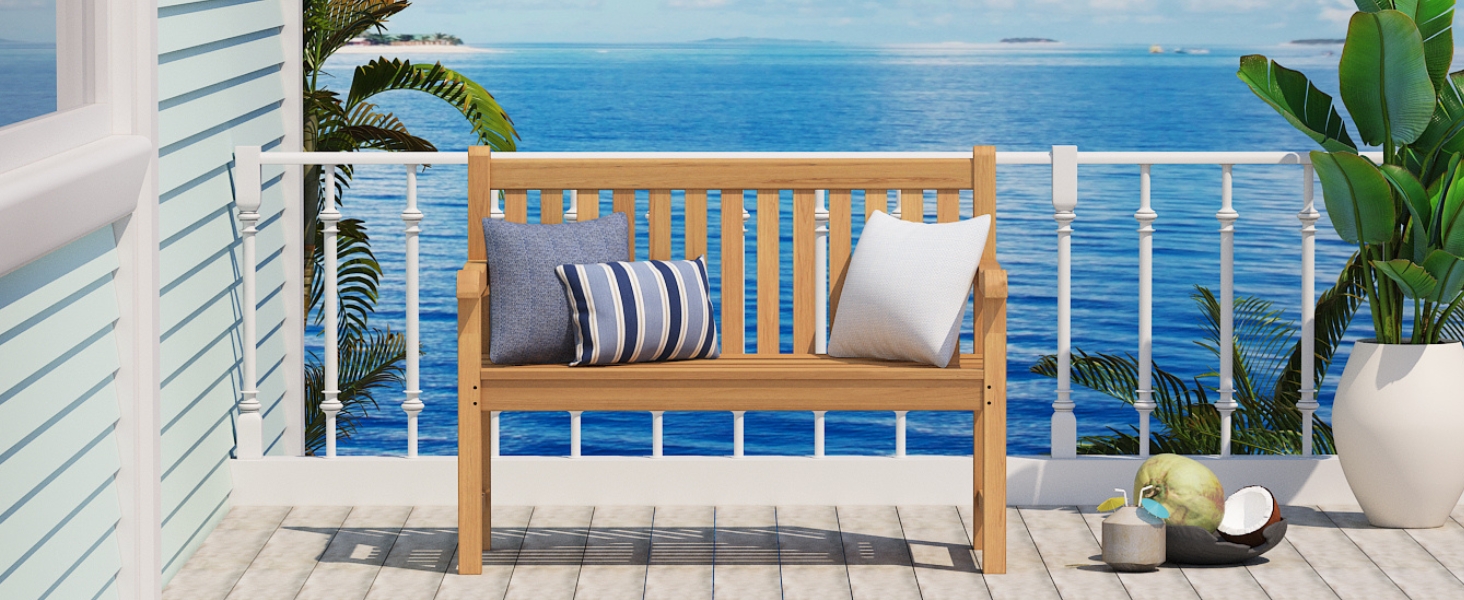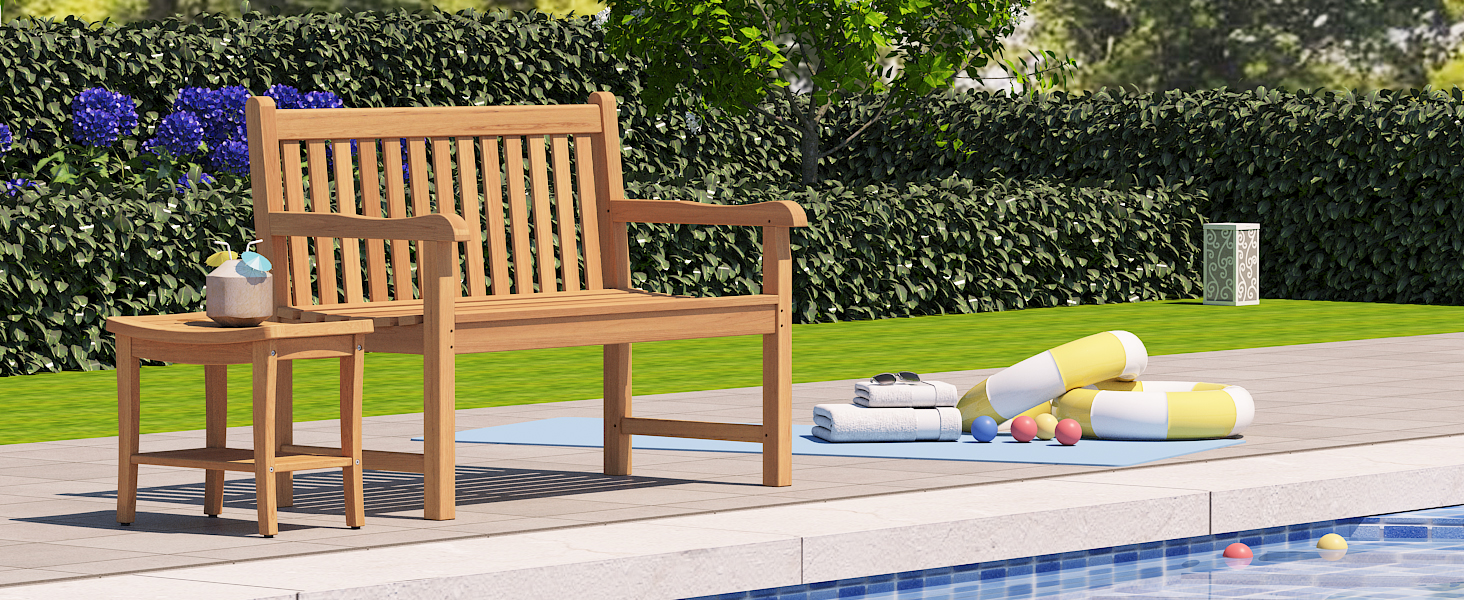 Outdoor Teak Bench, Park Bench for 2 People, Ergonomic Patio Seating, Weather-Resistant and Durable Design, Perfect for Yard, or Porch.