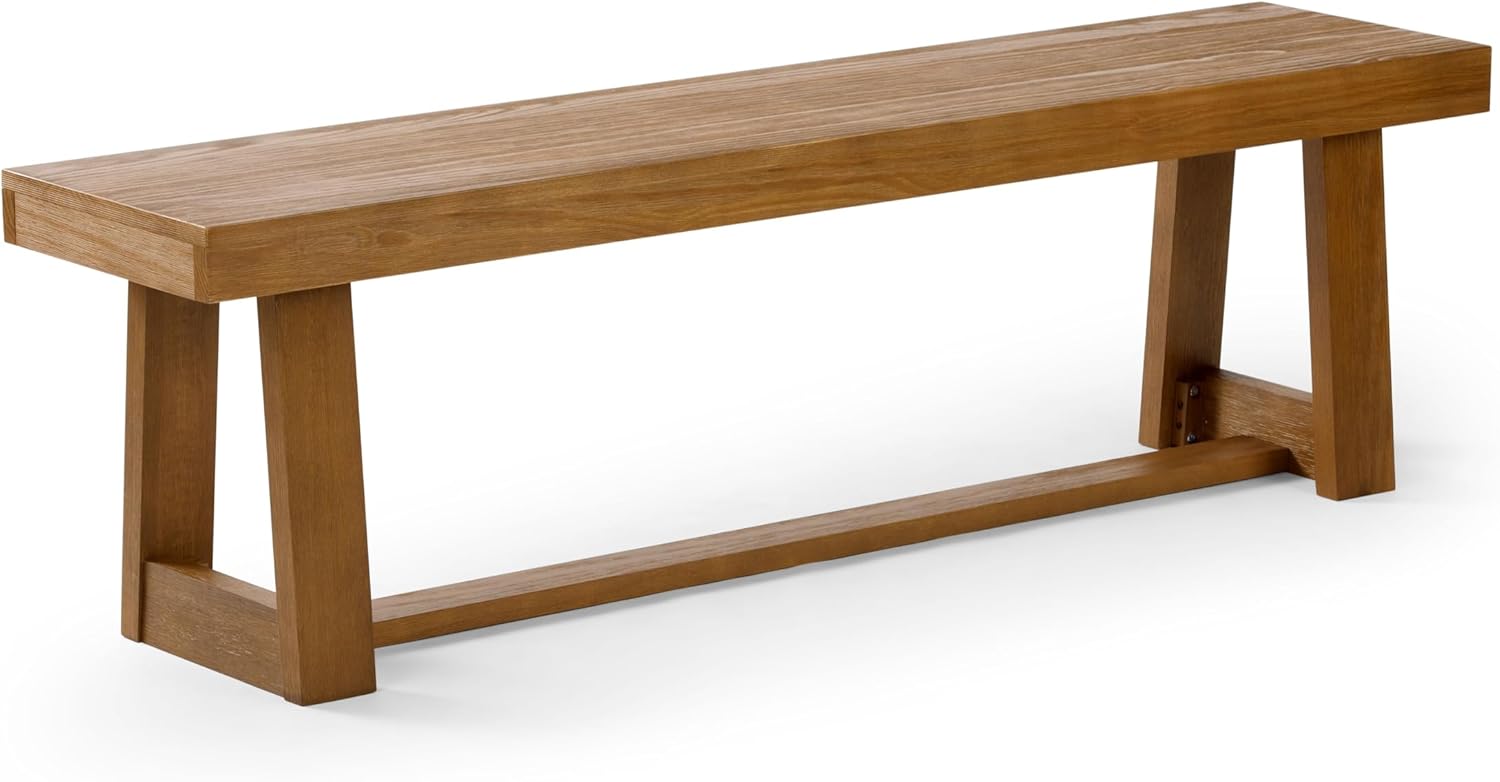 Plank+Beam 60 Inch Farmhouse Dining Bench, Solid Wood Entryway Bench, Wooden Outdoor Bench, Kitchen Dining Seat, Dining Room, Home Office, Living Room Furniture, Easy Assembly, Pecan Wirebrush