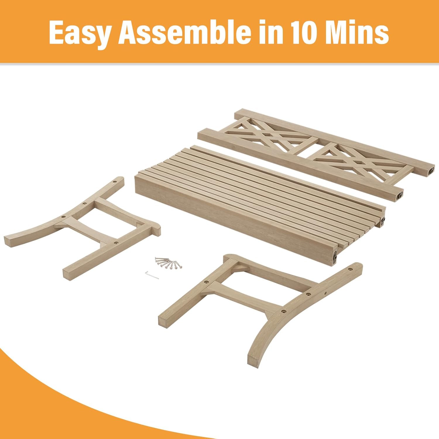 Psilvam 49''W All-Weather Poly Lumber Outdoor Bench – Grey, 2-Person Garden Bench with Decorative Backrest & Curved Armrests, Anti-Fade Patio Bench for Porch, Backyard, and Park(Grey)