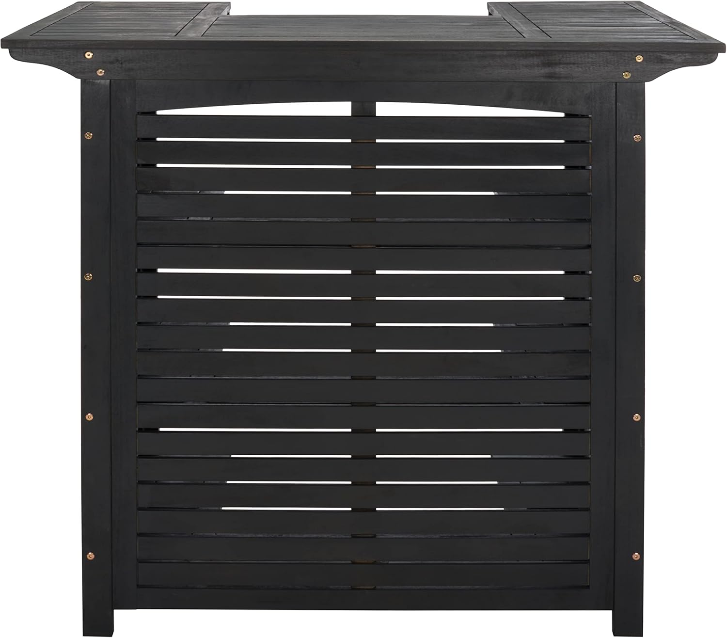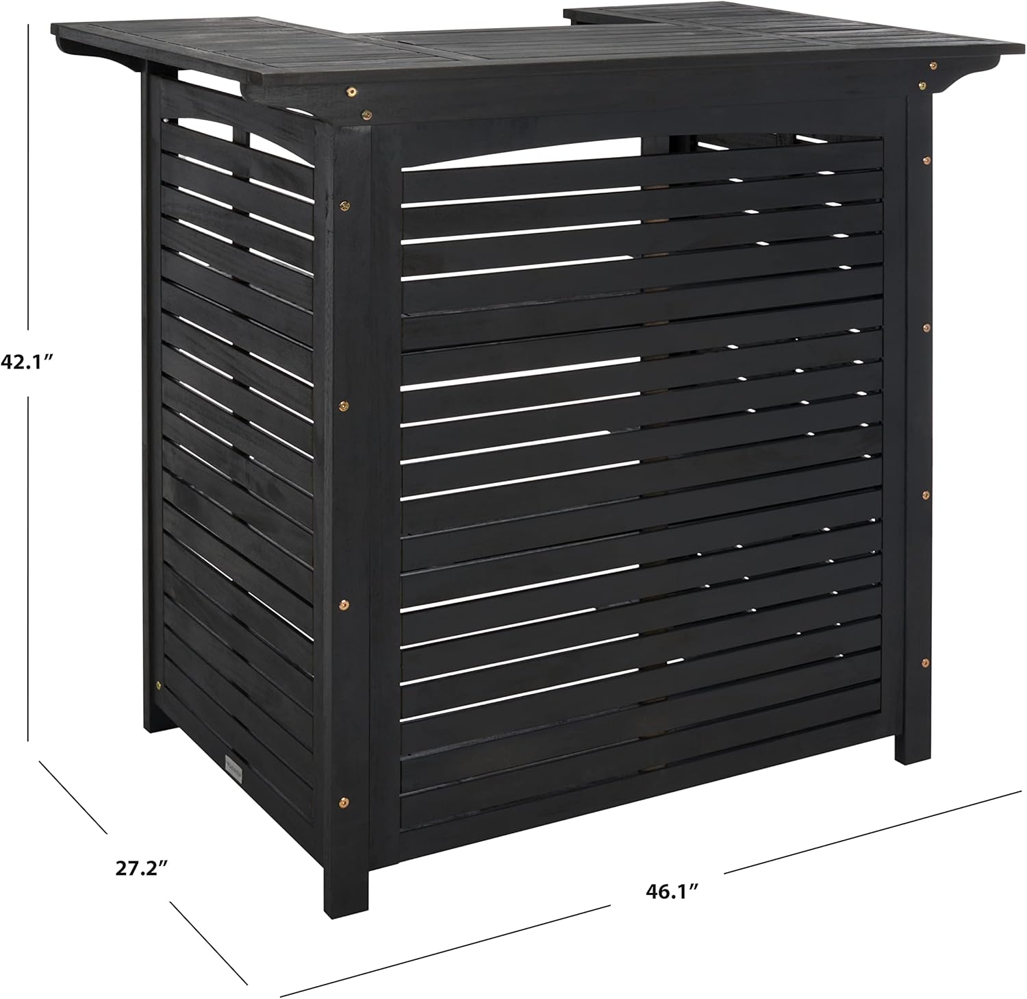 SAFAVIEH Outdoor Collection Monterey 42-inch Black Acacia Wood Slatted Bar Table