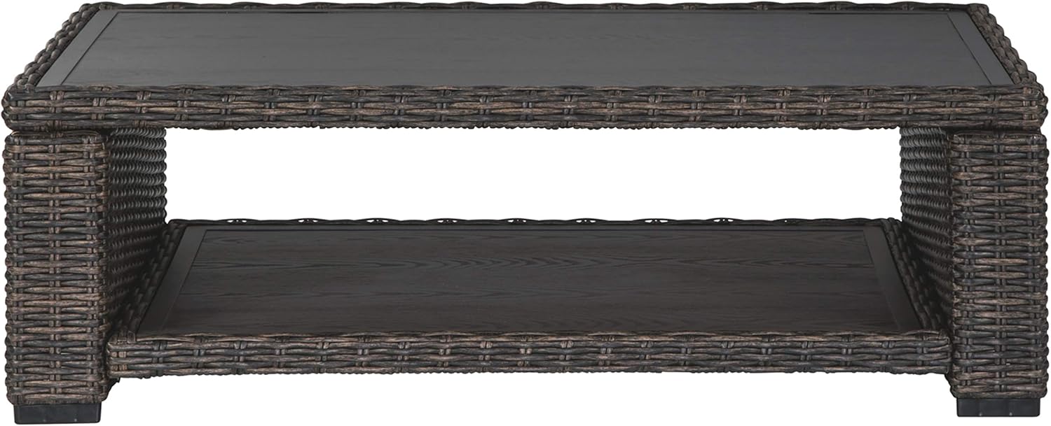 Signature Design by Ashley Grasson Lane Outdoor Wicker Cocktail Table with Aluminum Frame, Brown