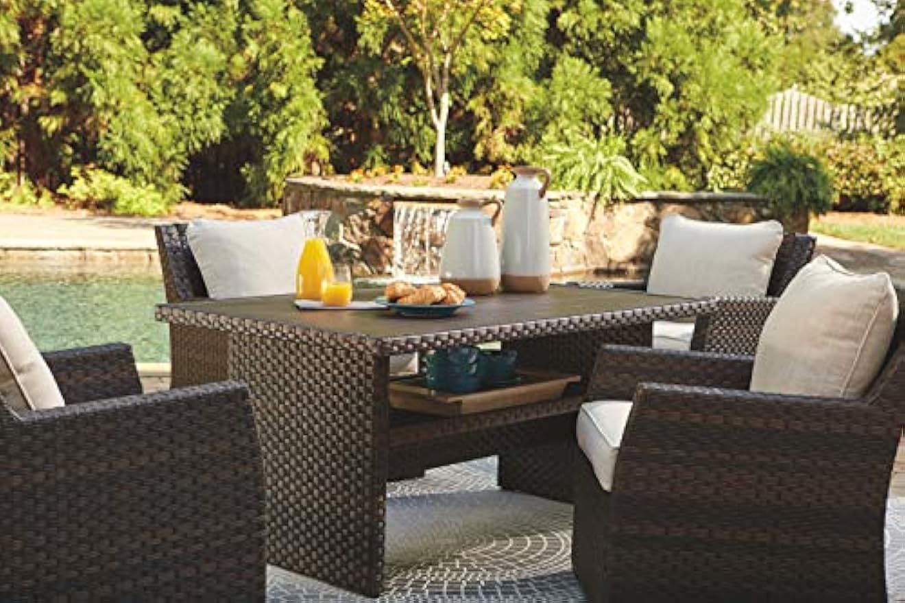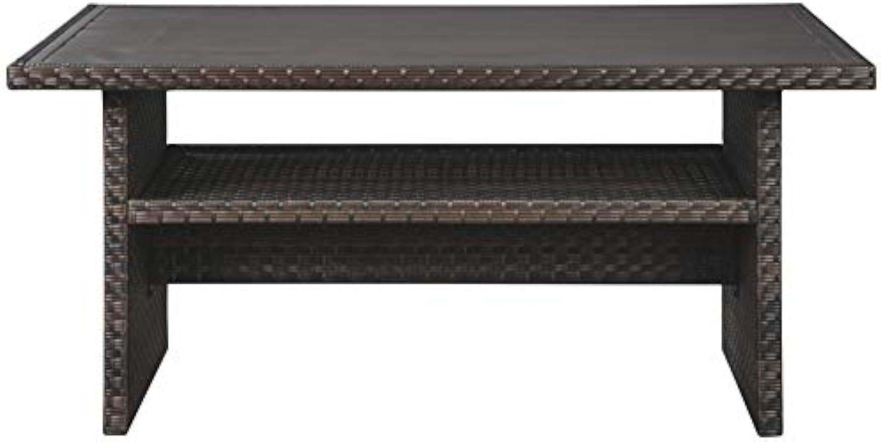 Signature Design by Ashley Outdoor Easy Isle Multi-Use Resin Wicker Patio Table, Dark Brown
