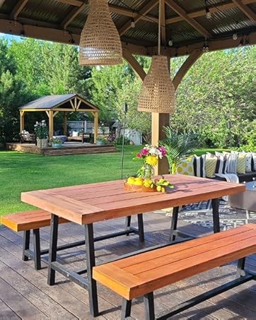 Sophia & William Outdoor Bench Garden Bench Wood 47", Patio Dining Bench Weatherproof with Back, Wooden Park Front Porch Benches for Outside, Rustic Poplar Wood Bench Long Narrow Clearance