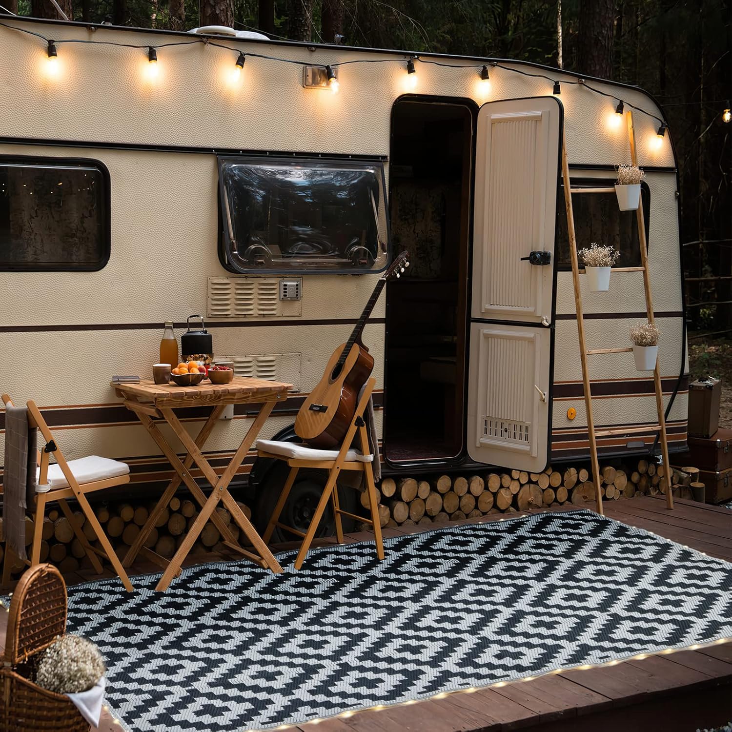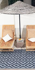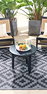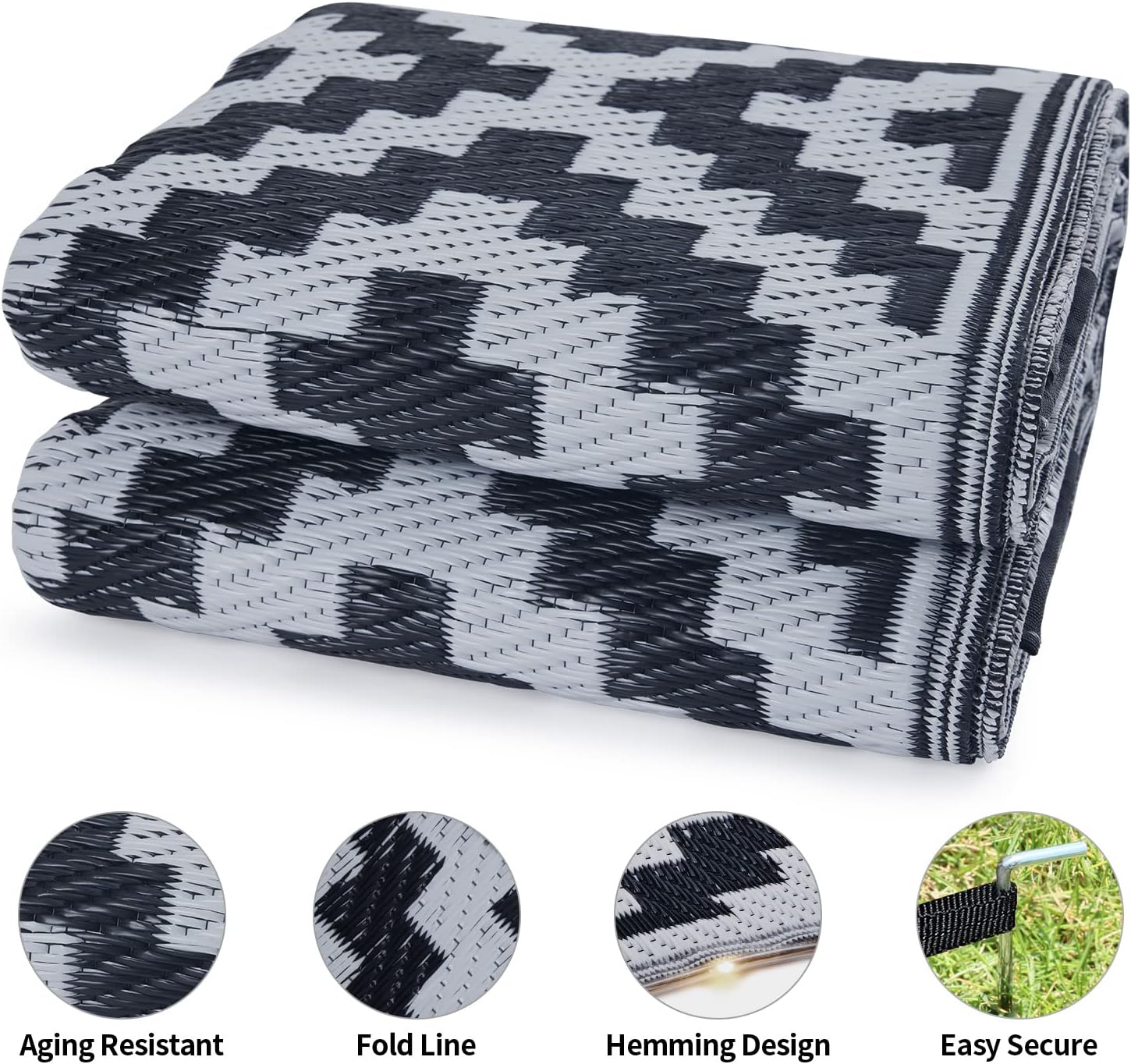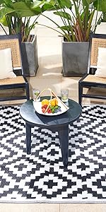 For a quick clean simply sweep away dirt with water and airing it dry. Reversible outdoor rugs can be folded into compact size for easy storage, it comes with a carrying bag for added convenience. Suitable for an afternoon outing or an RV road trip.